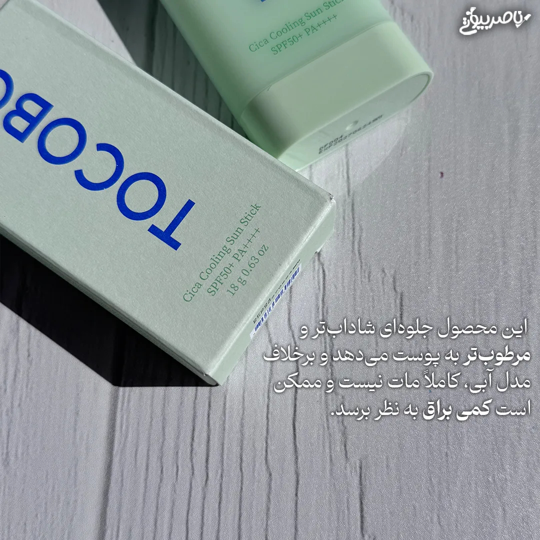 ضدآفتاب Tocobo Cica Cooling Sun Stick برای افرادی طراحی شده که به دنبال یک ضدآفتاب با بافت سبک، جذب سریع و قابلیت استفاده آسان هستند. این محصول با داشتن فاکتور حفاظتی بالا (SPF 50+ PA++++)، به طور موثری از پوست در برابر اشعههای UVA و UVB محافظت میکند. ویژگی برجسته این ضدآفتاب، وجود عصاره سنتلا آسیاتیکا (Cica) و عصاره نعناع در ترکیبات آن است که علاوه بر خواص ضدالتهابی، حس خنکی و آرامشبخشی به پوست میدهد. فرم استیکی این محصول، استفاده و تمدید آن را در طول روز، حتی روی آرایش، بسیار راحت کرده است.