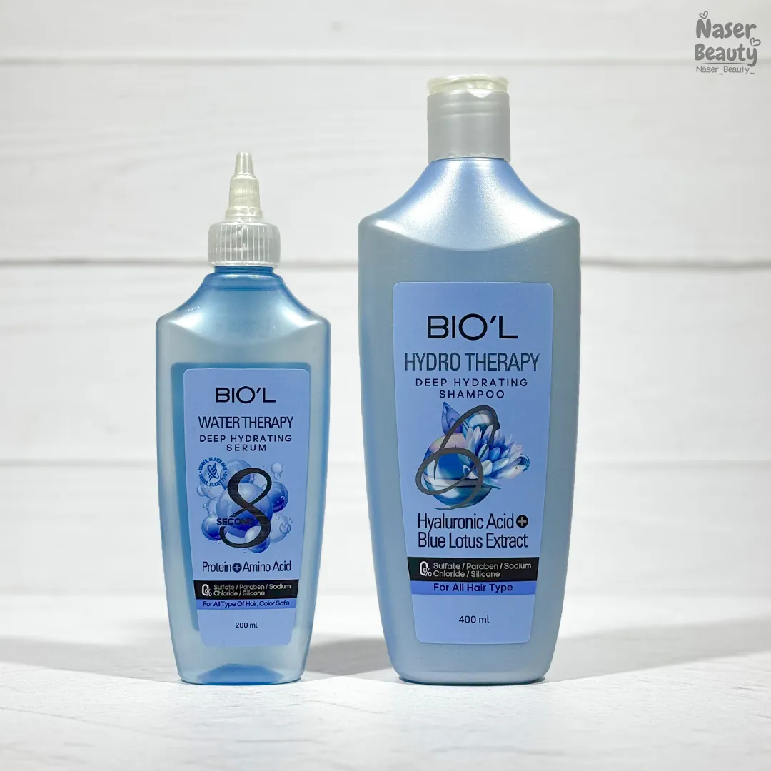 پک تخصصی آبرسانی عمیق مو بیول (شامپو هیدروتراپی + سرم ۸ ثانیهای)