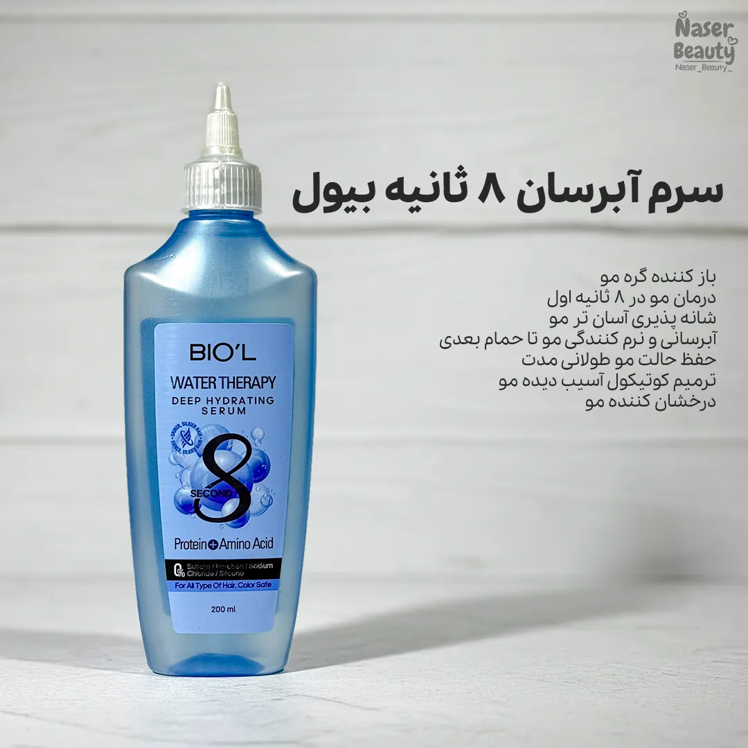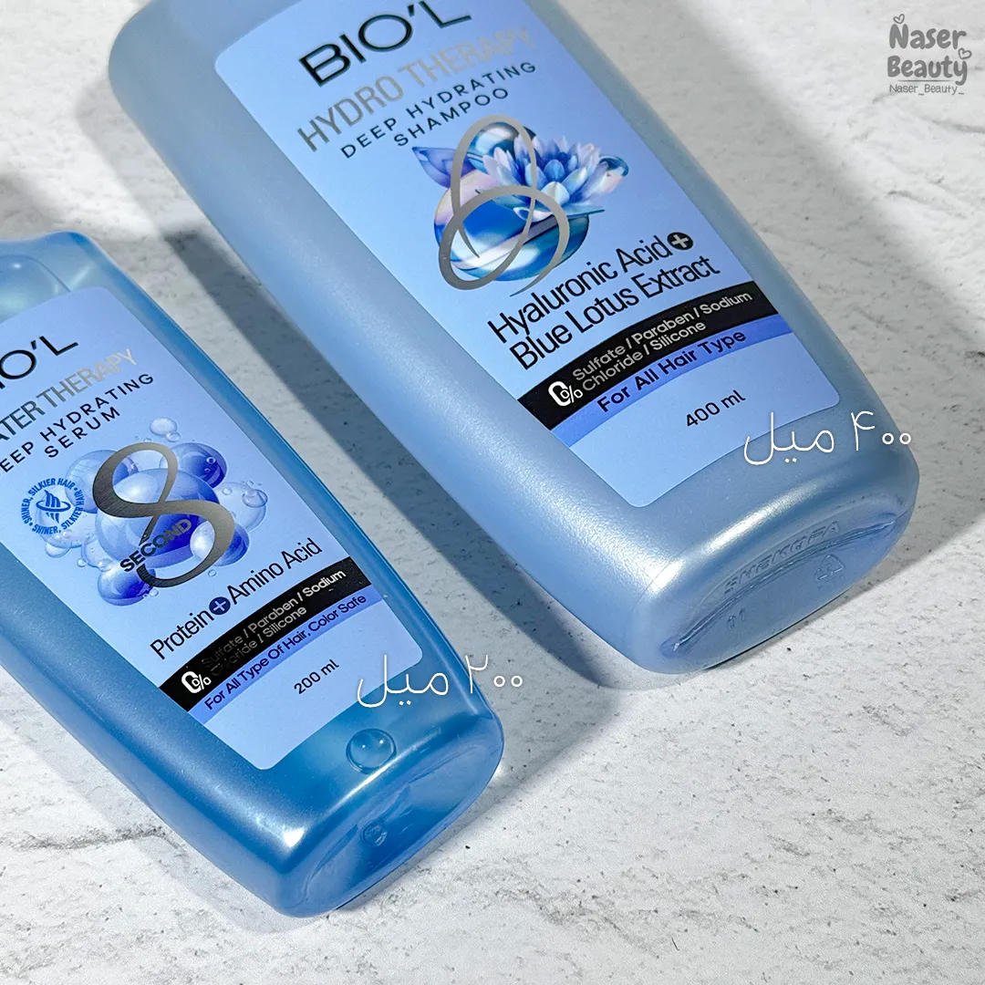 | نام محصول | پک تخصصی آبرسانی عمیق مو بیول (شامپو هیدروتراپی + سرم ۸ ثانیهای) |